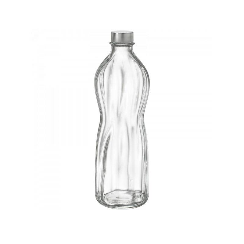 Bouteille d'eau pratique de Bormioli Rocco . Une alternative fantastique aux bouteilles en plastique, résistante et fonctionnelle, dotée d'un bouchon à vis pratique et surtout réutilisable. Fabriquée en verre transparent de haute qualité et extrêmement résistant, elle vous permettra d'abandonner définitivement les bouteilles en plastique. Convient pour l'eau plate et gazeuse