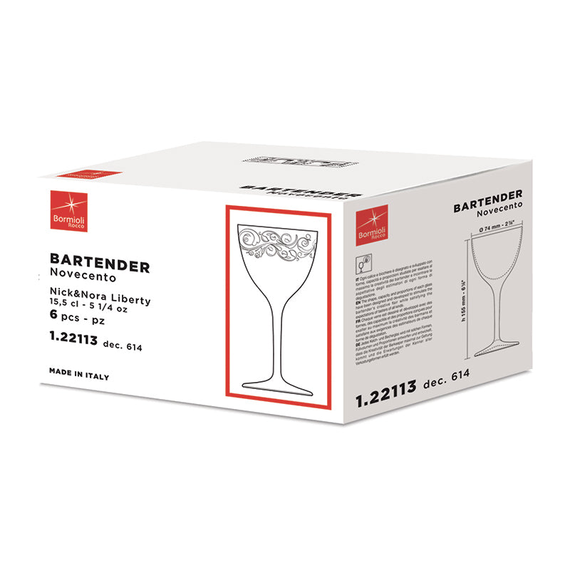 Bartender Novecento Liberty Calice Nick & Nora 15,5 cl Coffret de 6 verres décorés