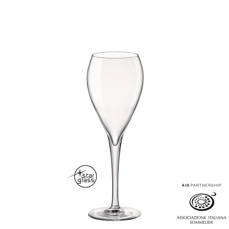 Élégance et style italien, verre en cristal de la plus haute pureté et qualité, bords fins, léger et résistant, dédié aux sommeliers haut de gamme, recommandé pour les vins mousseux et les vins pétillants.
