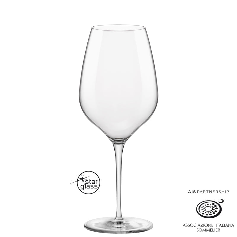 Élégance et style italien, verre en cristal de la plus haute pureté et qualité, bords fins, léger et résistant, dédié aux hauts sommeliers, recommandé pour les vins rouges matures.