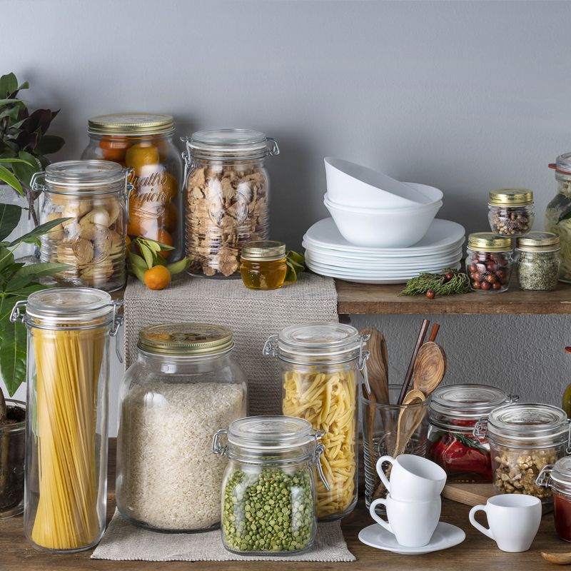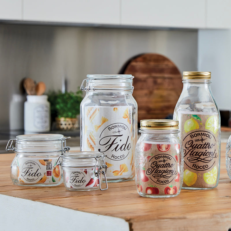 Ideali per la conservazione di alimenti come marmellate, sottaceti e cibi secchi. Disponibili in diverse dimensioni, sono dotati di guarnizioni in gomma e chiusure in metallo, garantendo una conservazione sicura e prolungata. Oltre alla funzione di conservazione, i vasi Fido si prestano anche come elementi di design per la cucina, grazie al loro stile vintage e alla possibilità di personalizzarli con etichette o decorazioni.