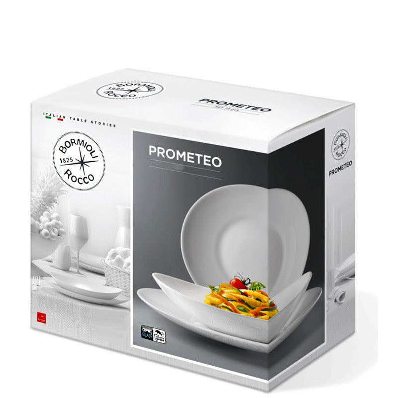 Ensemble Prometeo Assiettes et Saladier 19 Pièces Verre Opale