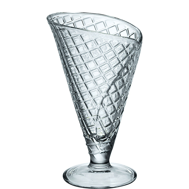 Croissant en verre élégant et original décoré de biscuits, parfait pour servir de délicieuses glaces ou de délicieux desserts