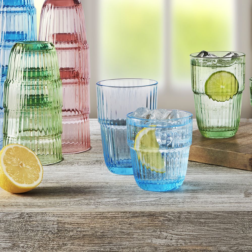 Trempé et empilable, ce verre au design années 70 accentue la brillance du verre et sublime son contenu.
