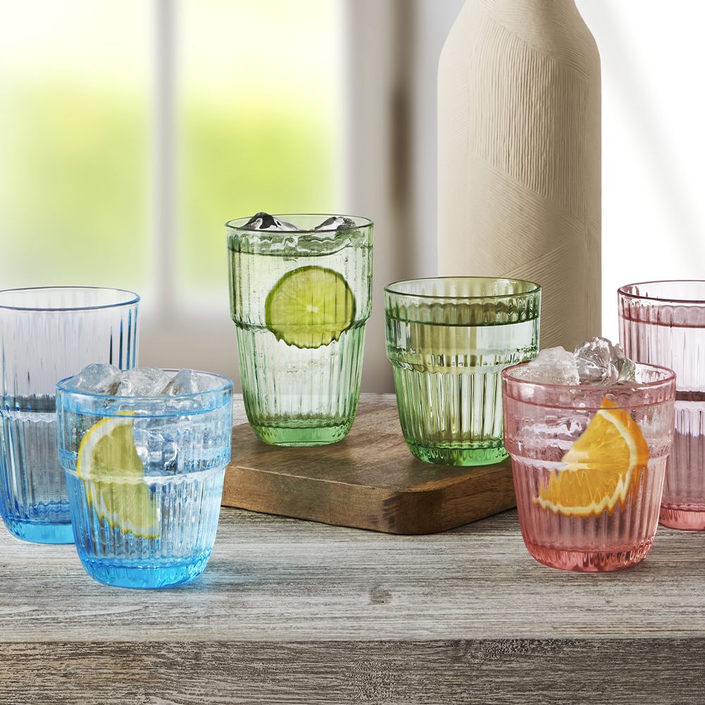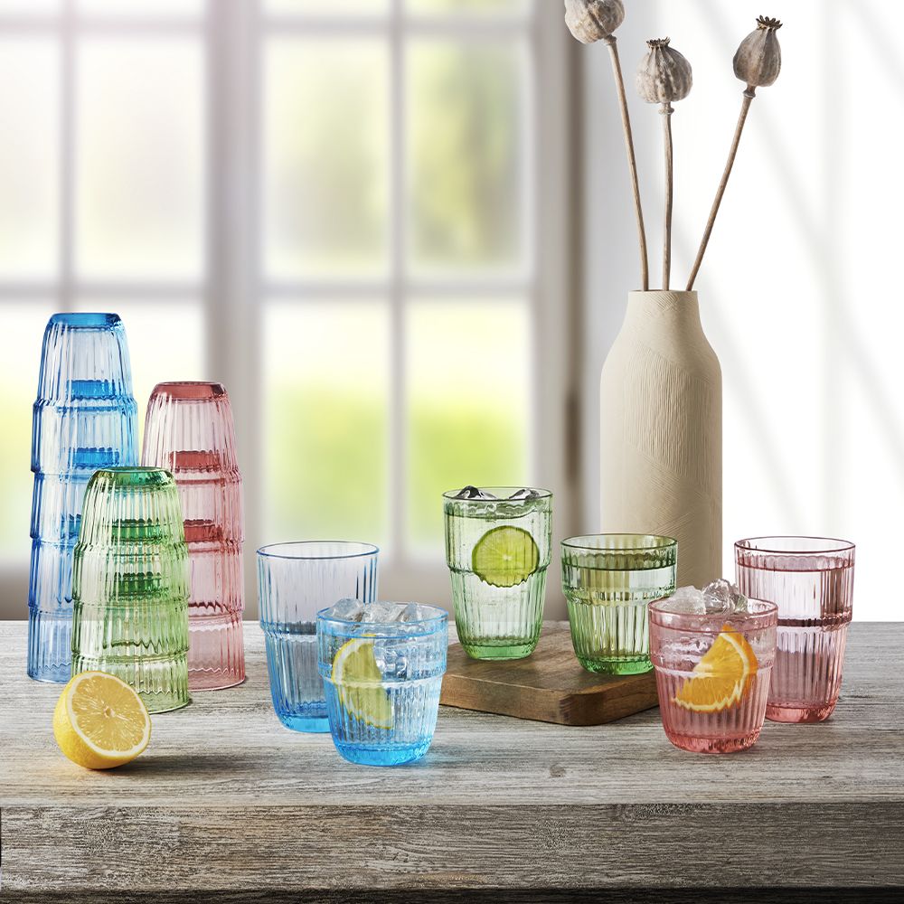 Trempé et empilable, ce verre au style années 70 accentue l'éclat du verre et sublime son contenu.