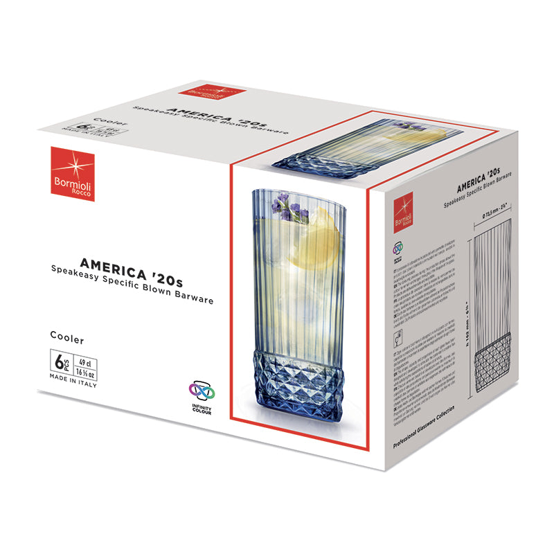America 20s Bicchiere Cooler Bibita 49 cl Sapphire Blue Set da 6 Pezzi