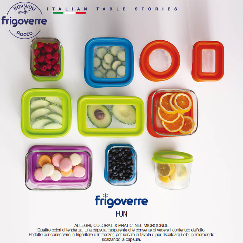 Leader del mercato italiano dei contenitori in vetro da oltre 40 anni, propone una collezione completa con 14 formati, caraffe, piatti contenitori e set combinabili, ideali per ogni esigenza di conservazione.