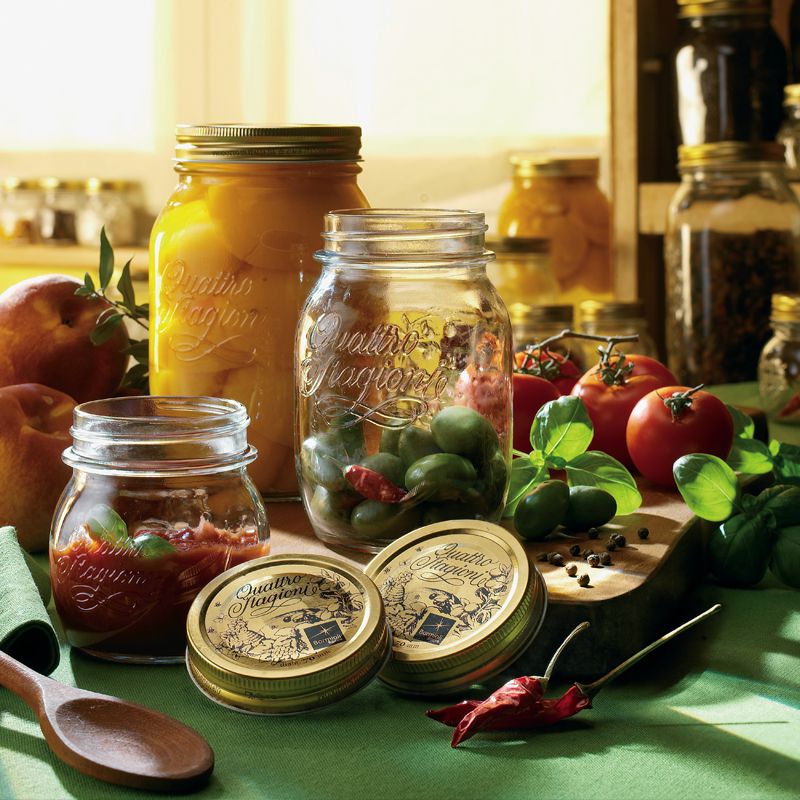 Vaso in vetro grande con capsula di chiusura sottovuoto per gustose e prelibate conserve di frutta e verdure, massima igiene, totale sicurezza alimentare.