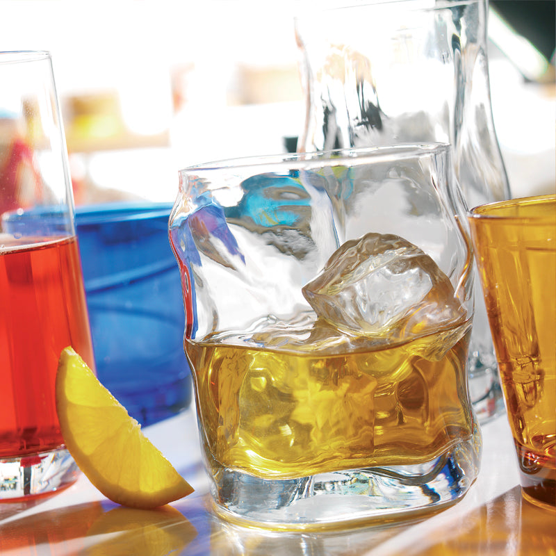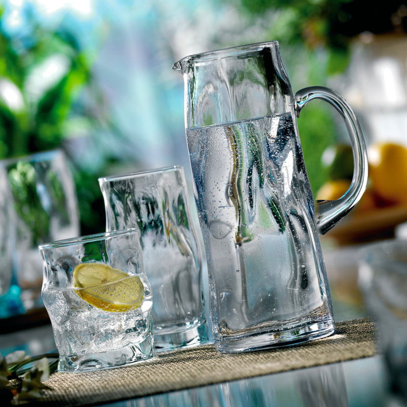 Elegante bicchiere whisky in vetro, originale design evoca tutta la forza dell'acqua sorgiva mostrandone la sinuosità delle linee e la delicatezza delle curve, Design By ROSS LOVEGROVE