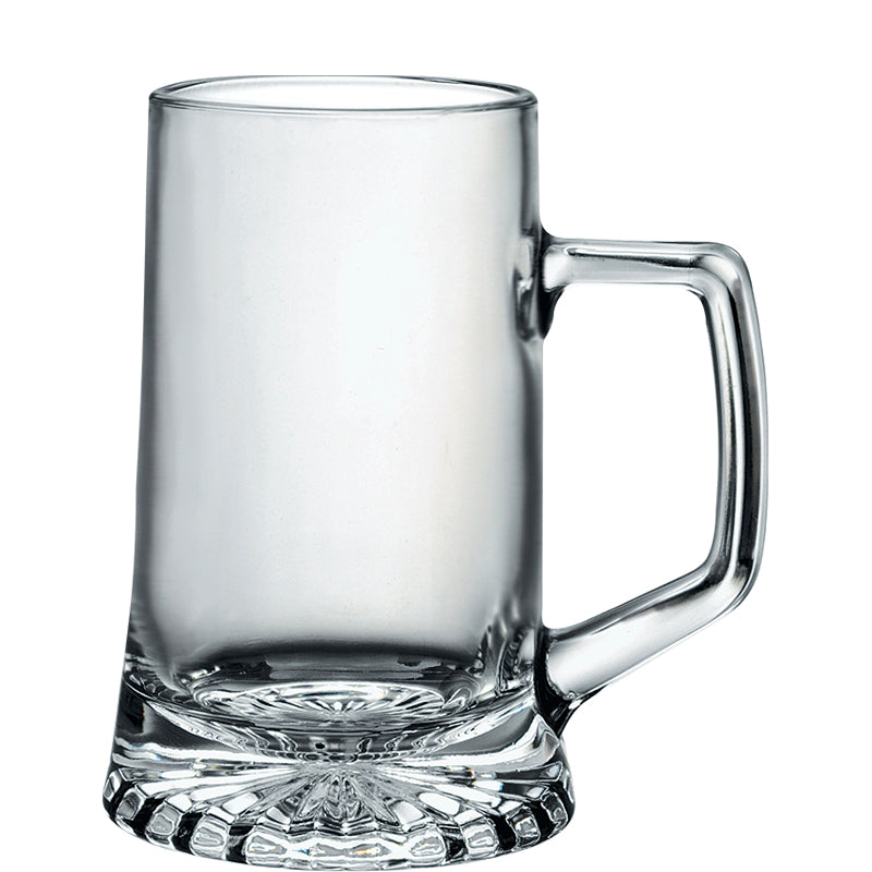 Pratico e robusto bicchiere da birra da 51 cl vetro molto resistente con manico ad ansa. Ottimo per il servizio nelle taverne e pub